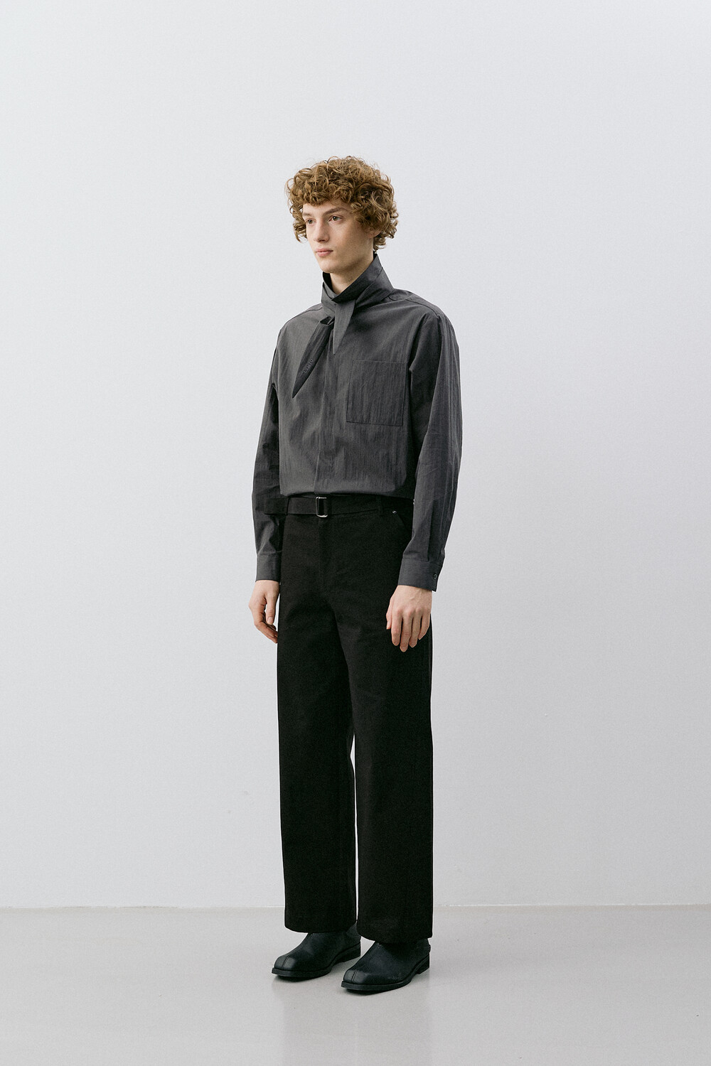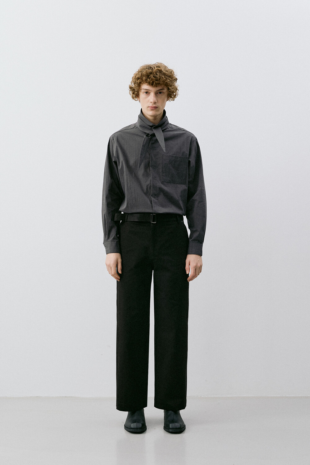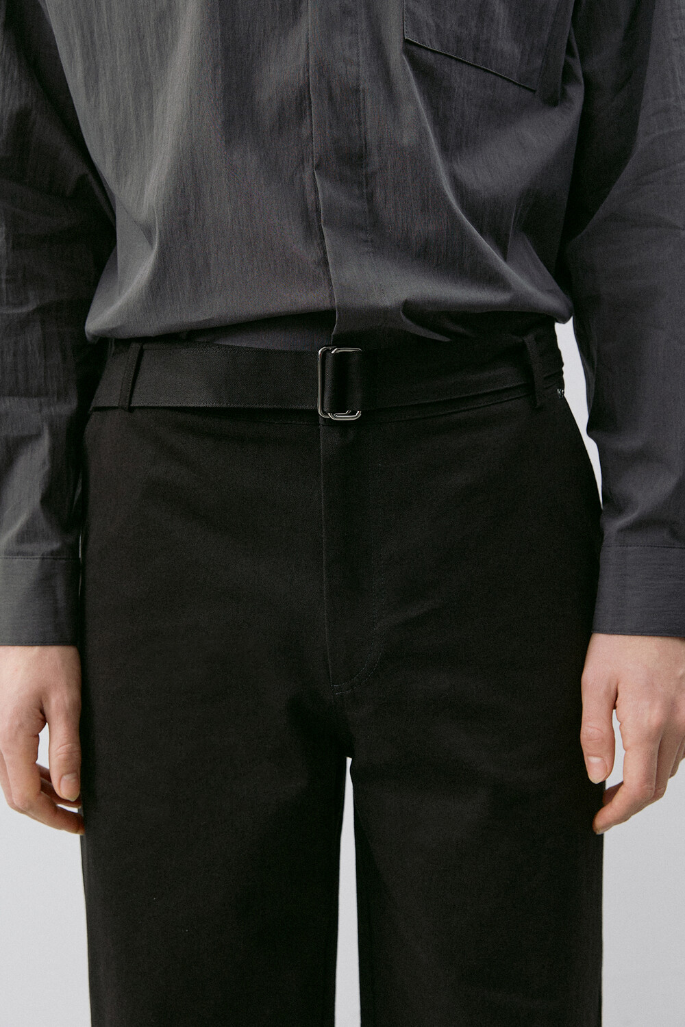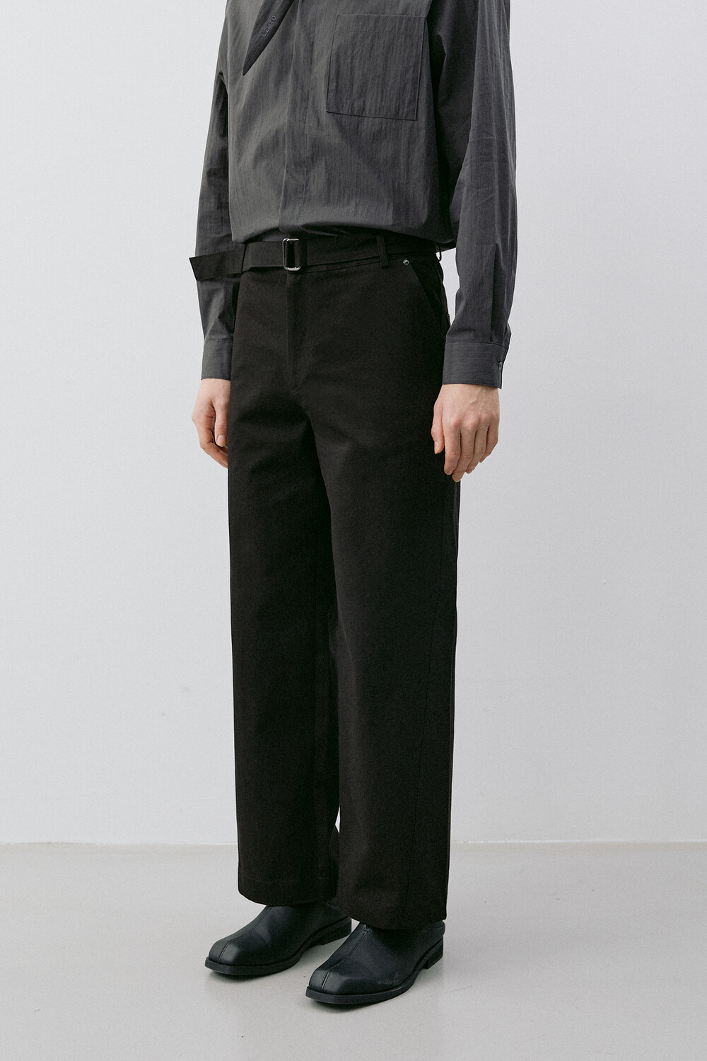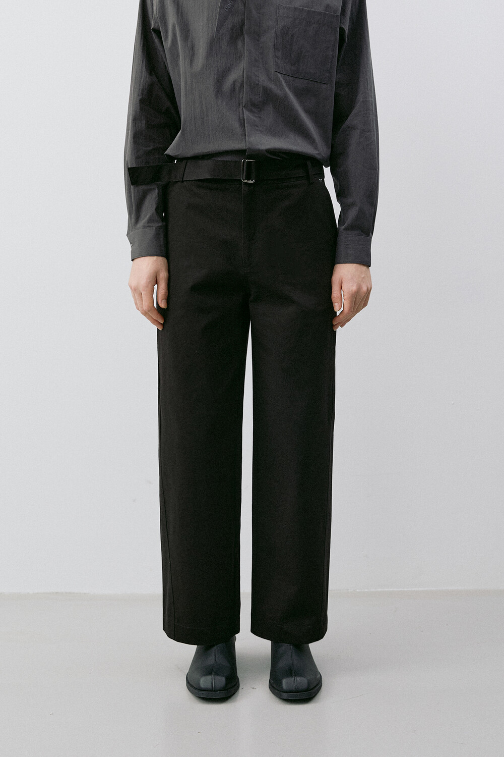 BELTED STRAIGHT CHINO PANTS_BLACK