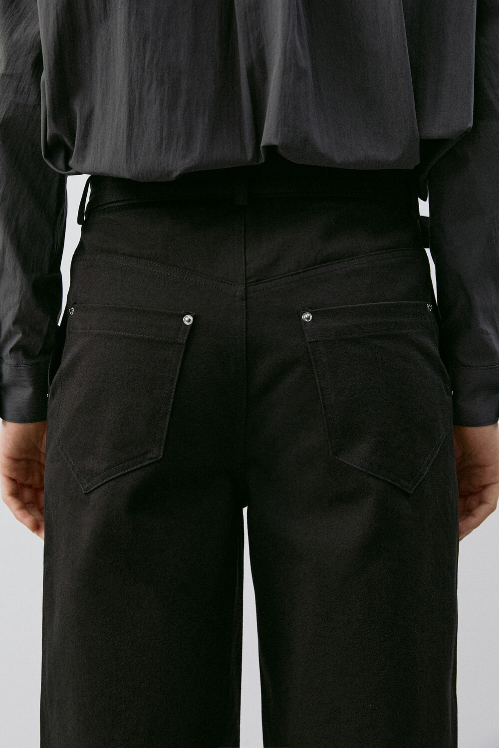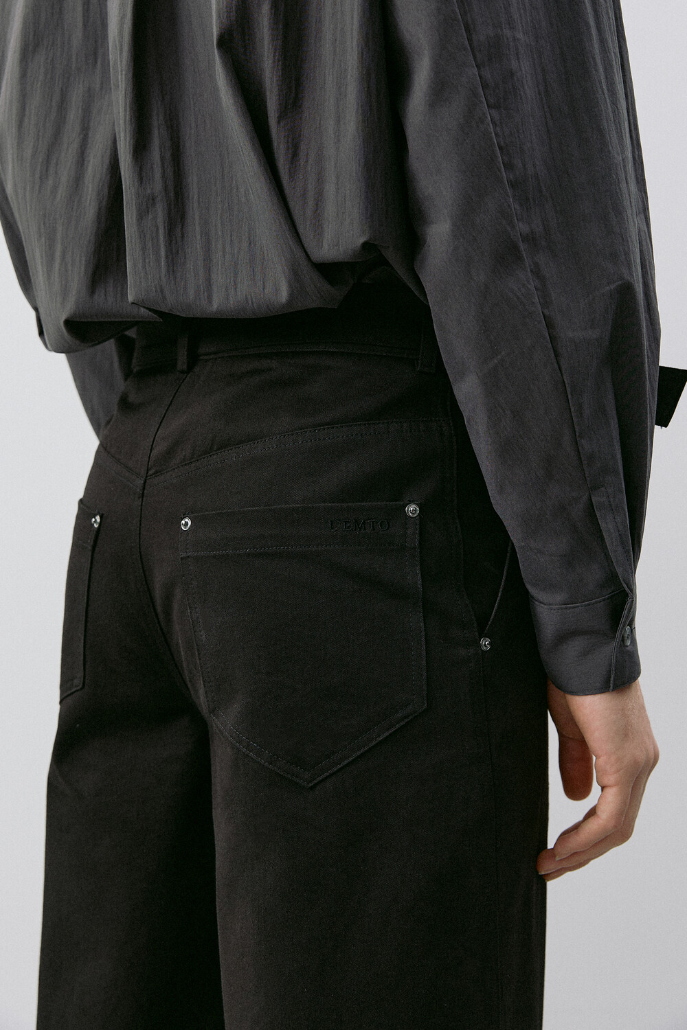 ∙ 뒤 패치 포켓에 브랜드 로고 자수 삽입