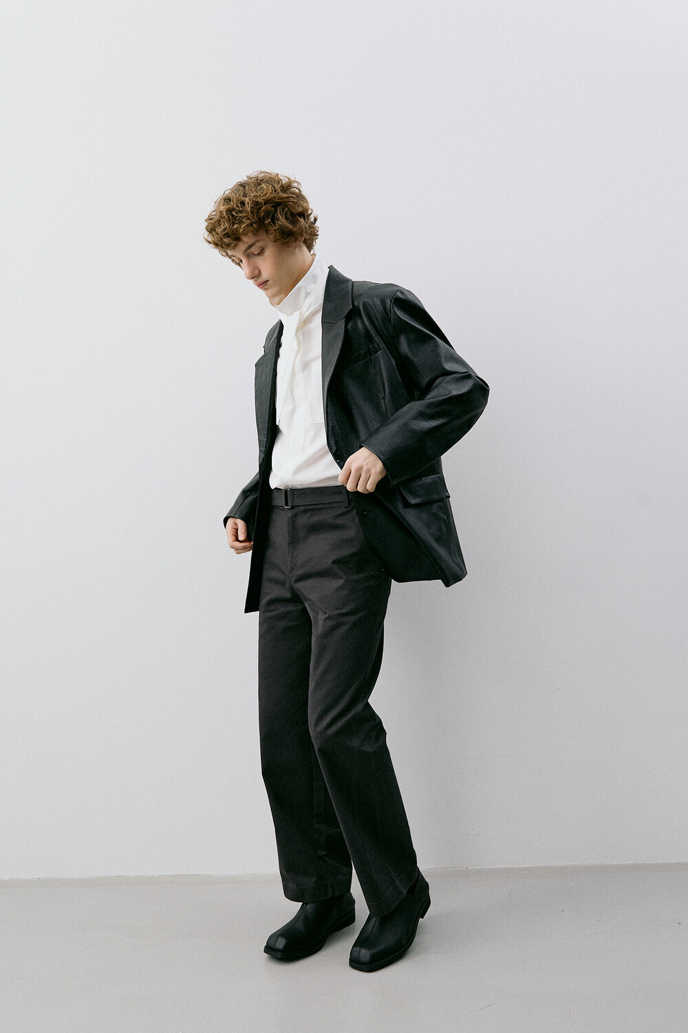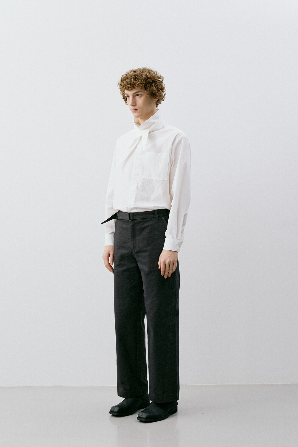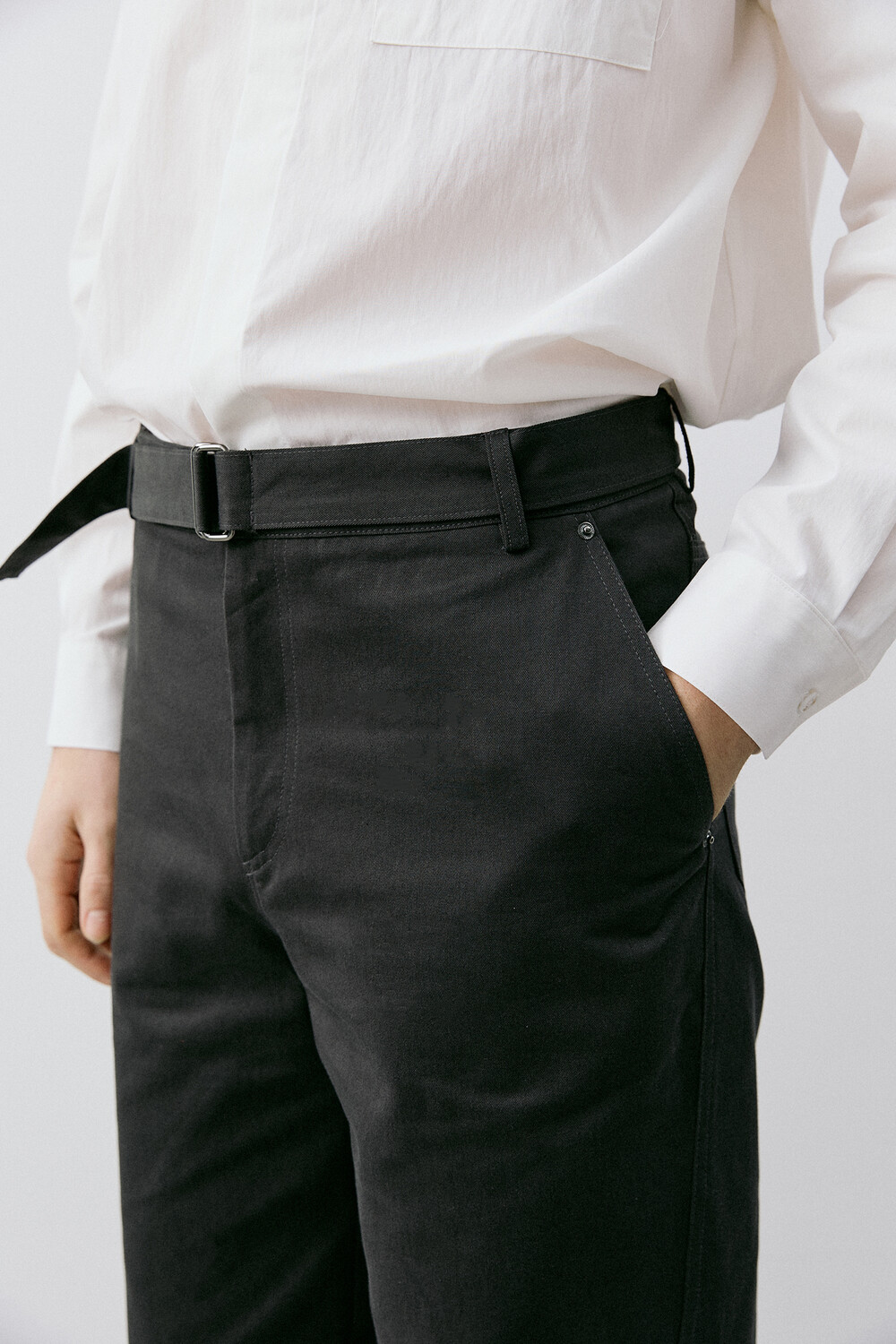 BELTED STRAIGHT CHINO PANTS_CHARCOAL
