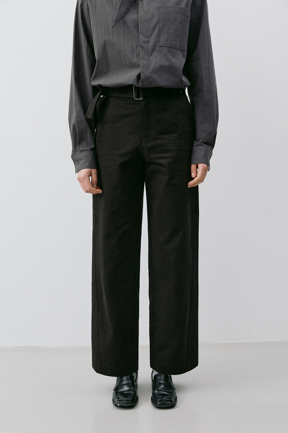 BELTED STRAIGHT CHINO PANTS_BLACK