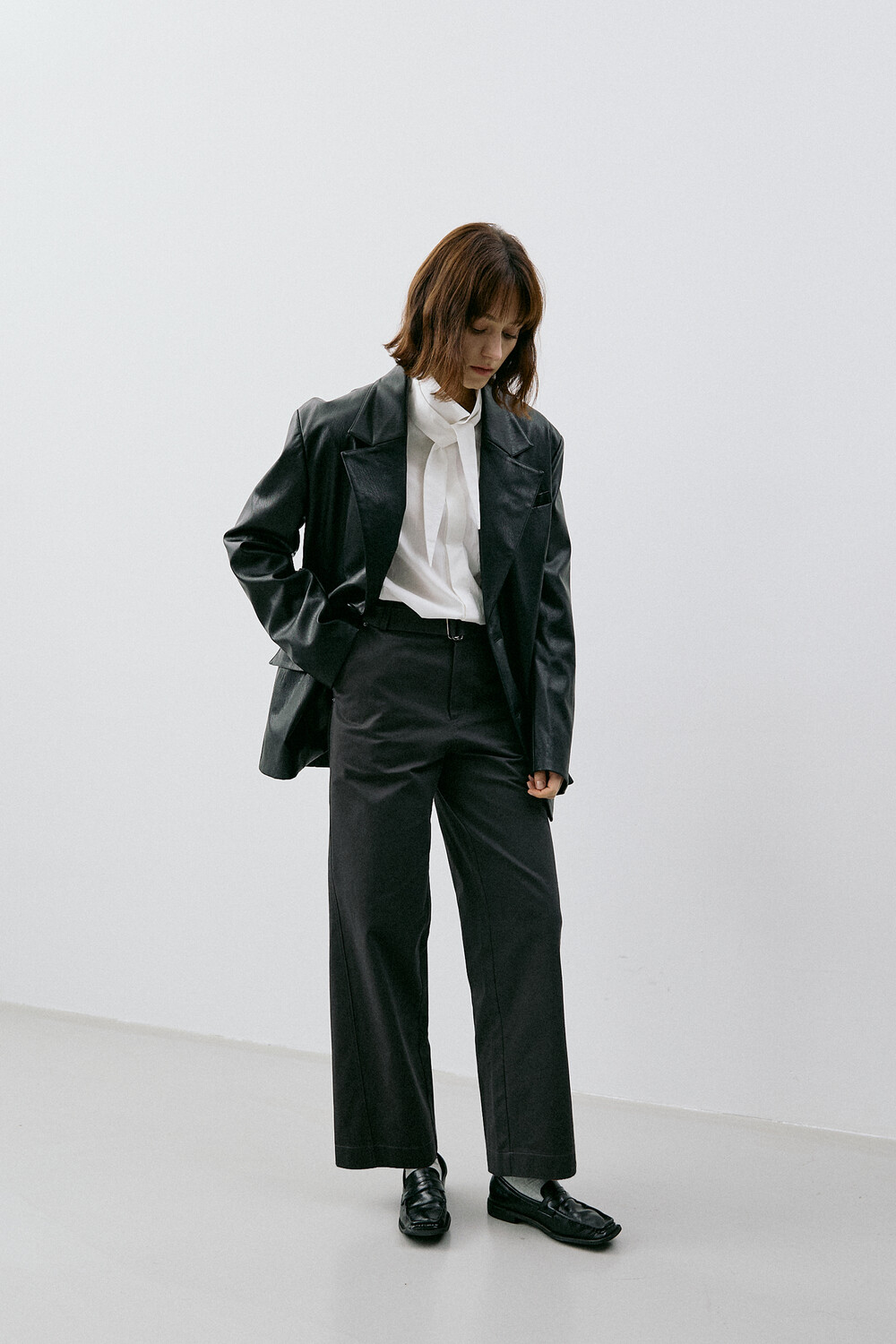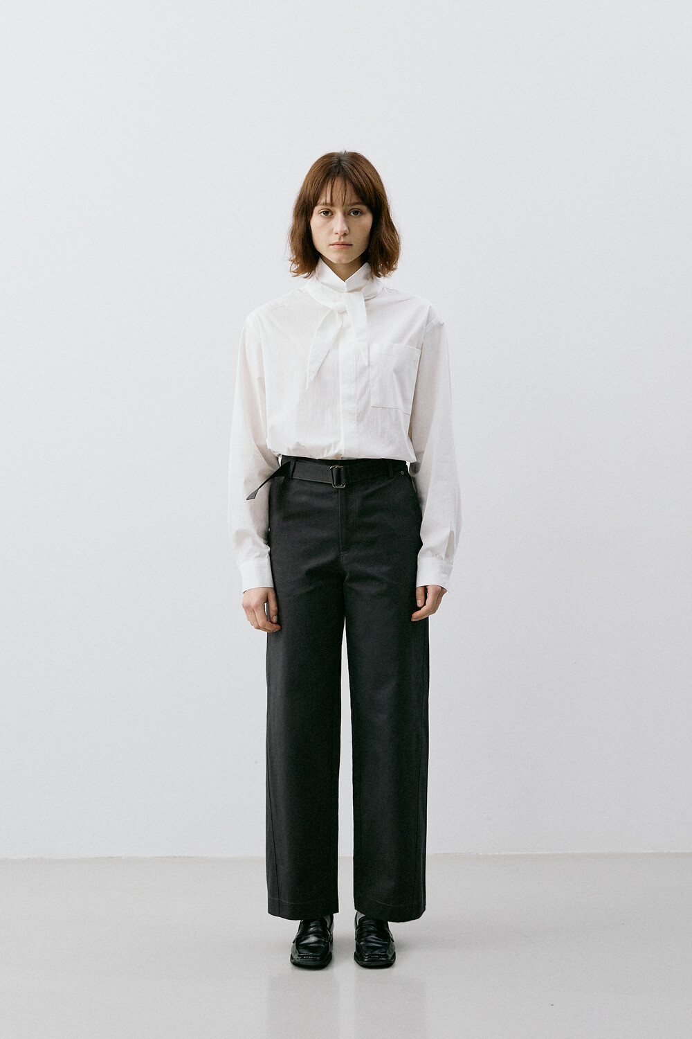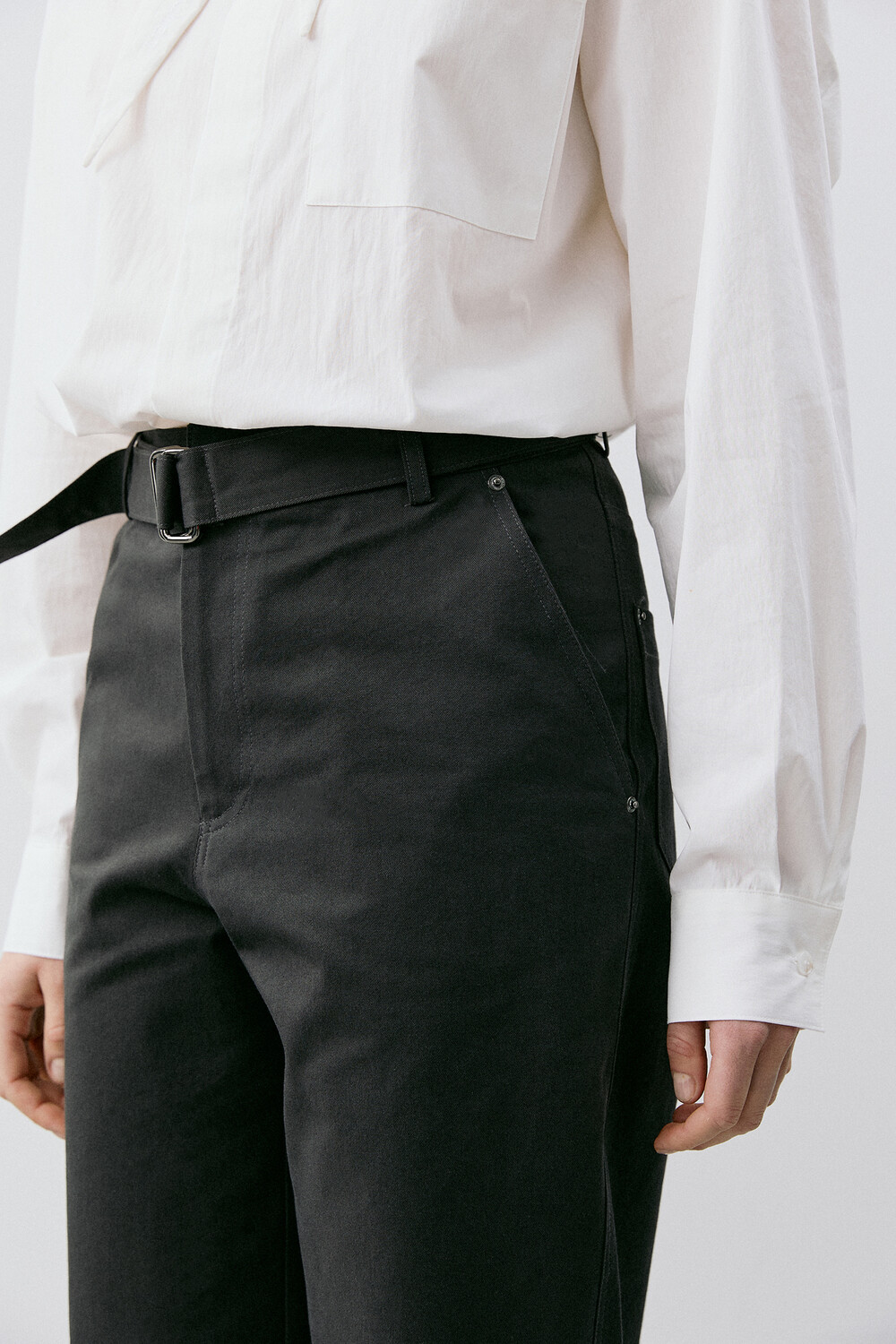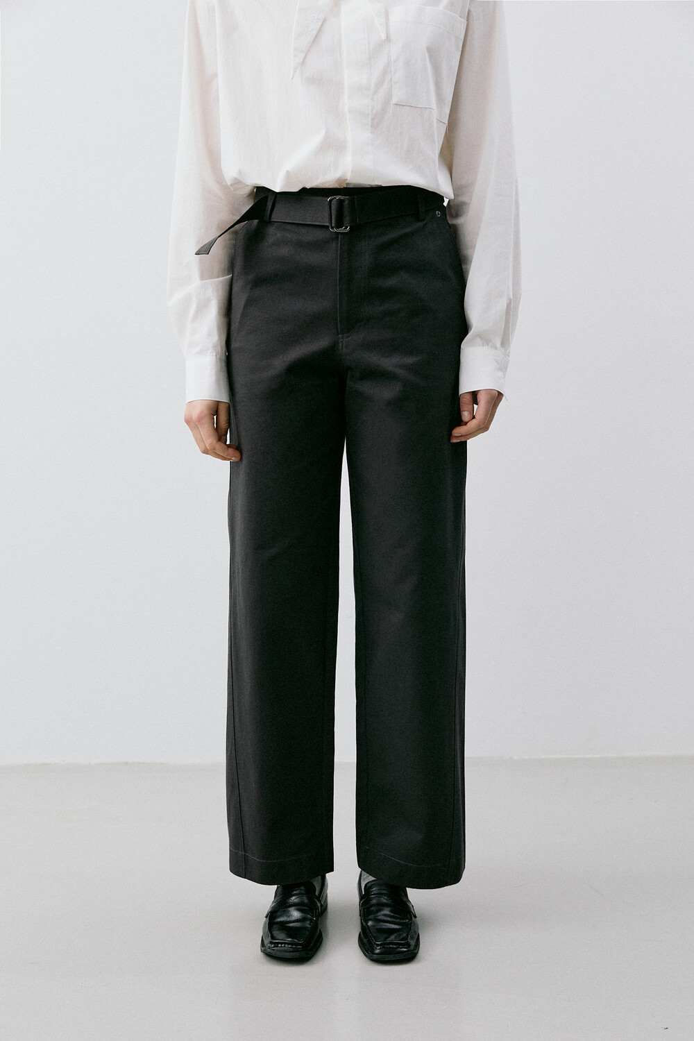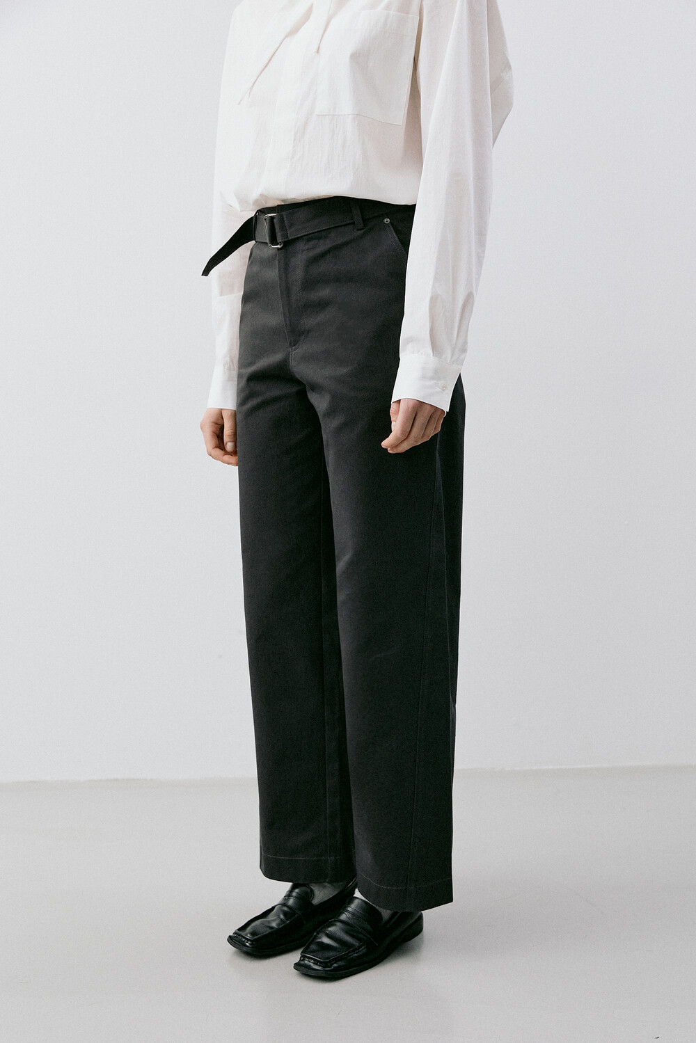 BELTED STRAIGHT CHINO PANTS_CHARCOAL