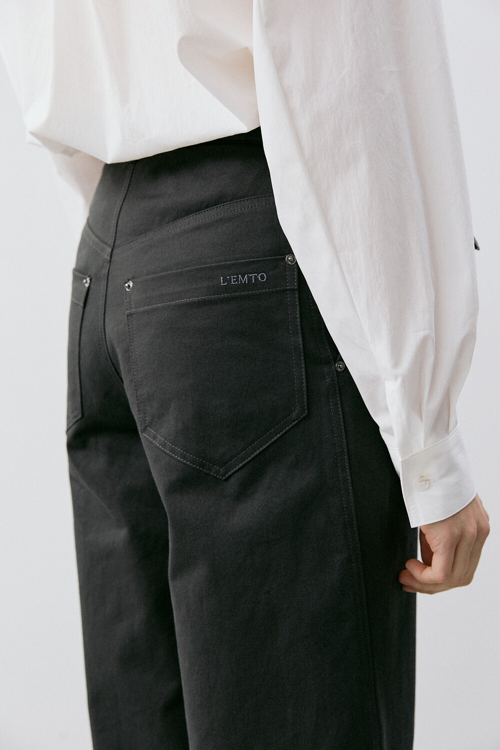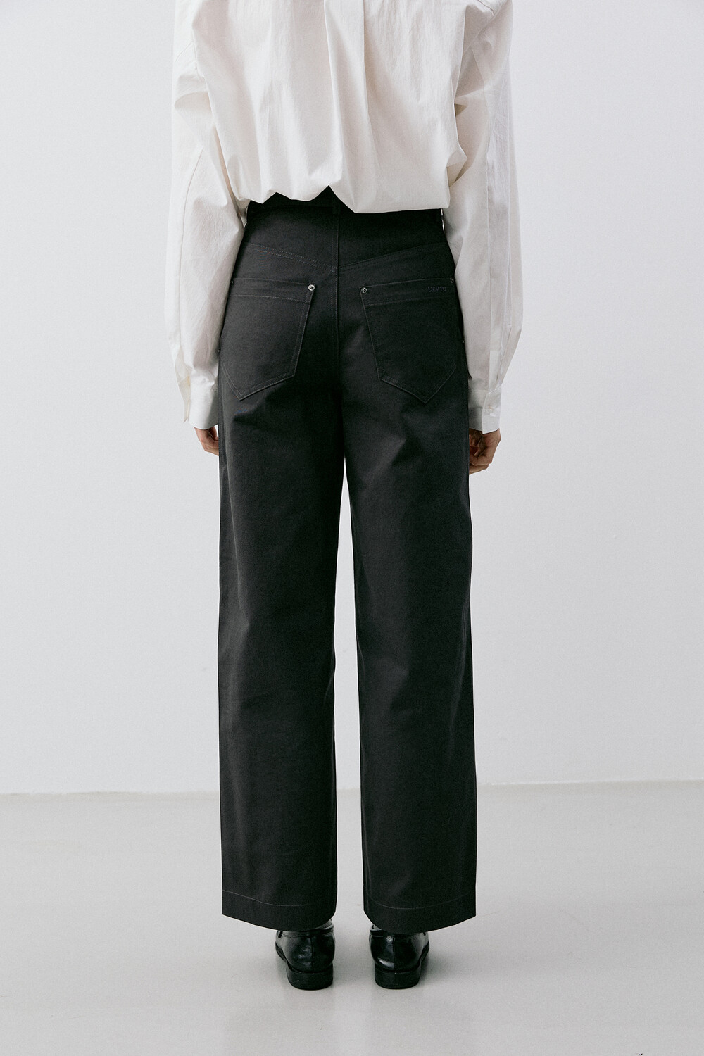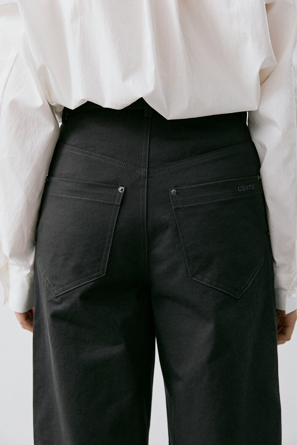 ∙ 뒤 패치 포켓에 브랜드 로고 자수 삽입