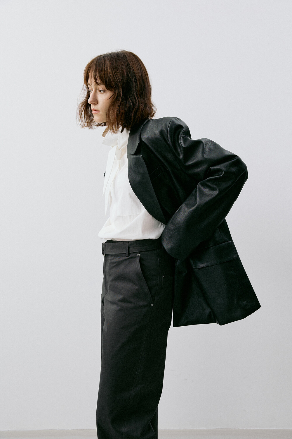 ∙ 동일 원단으로 제작된 사각 링 디테일의 벨트